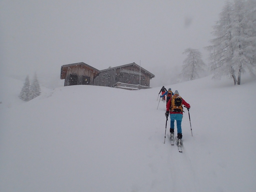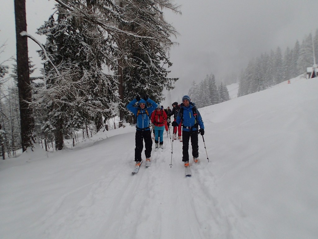 Nach der Auffrischung starteten wir mit den Skiern über die Königsbachalmen zum Übungsgelände am Schneibsteinhaus wo wir nach einer kurzen Pause den Praxisteil machten. Um den Praxisteil realistischer umsetzen zu können, bildeten wir 2 gleich große Gruppen.