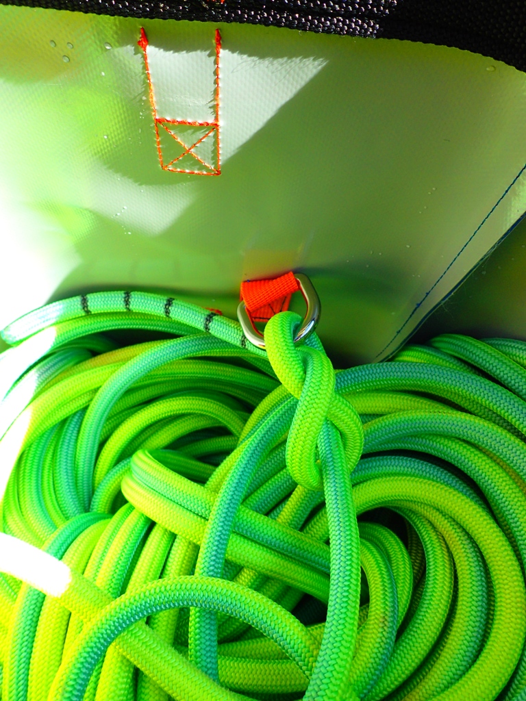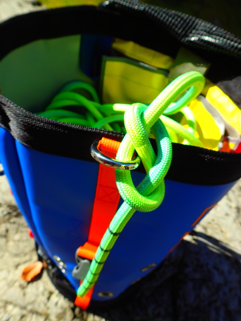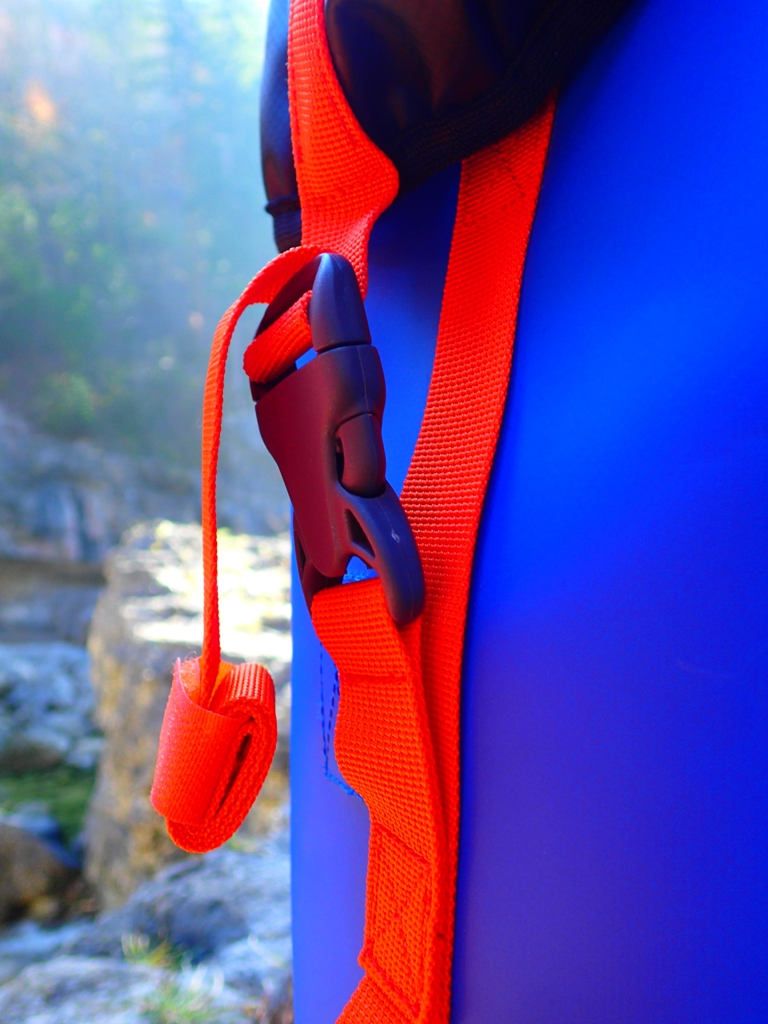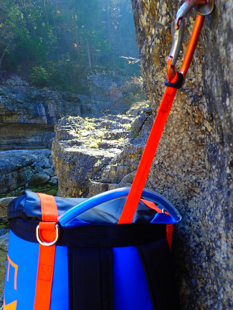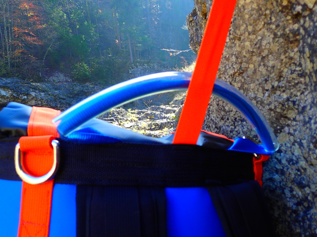 Auffällig ist das orange Gurtband-Material das auch noch im Weißwasser oder in dunklen Schluchten gut sichtbar ist.