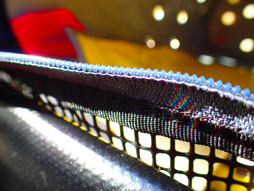 Eine Innendeckeltasche aus Kunststoff Netzgewebe mit einem Reißverschluss.