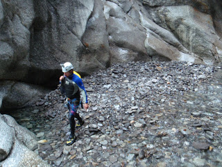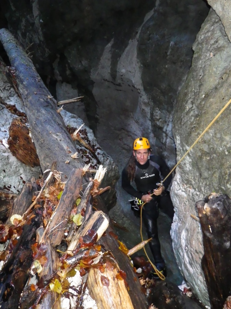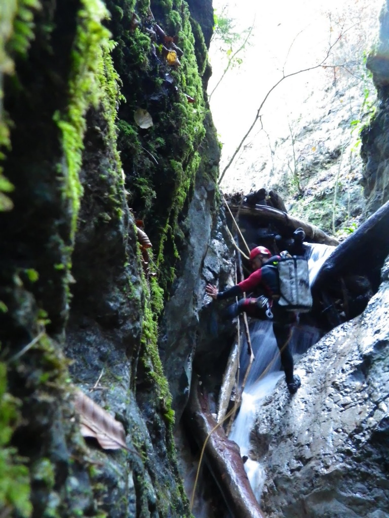 Über recht beeindruckende und teils gefährliche Verklausungen stiegen wir durch den, im unteren Teil sehr engen, Canyon.