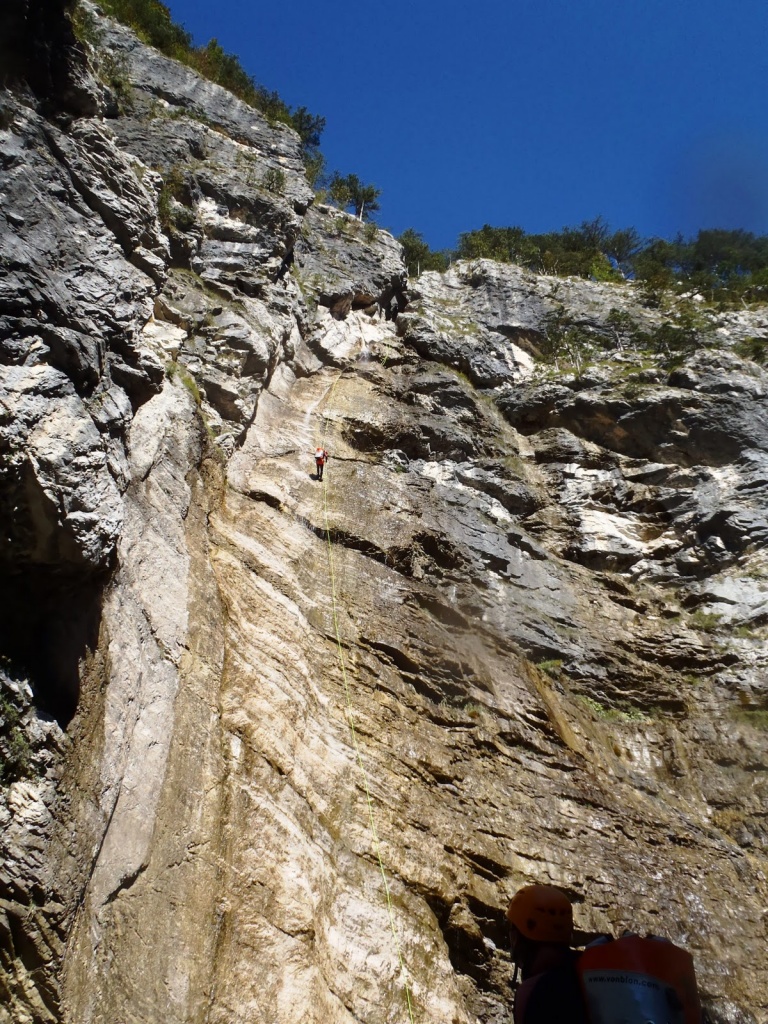Das Traumwetter war für die vertikale Schlucht perfekt. Die Schlucht bot für jeden etwas. Seiltechnik und Systeme konnten wieder mal gut trainiert werden. Trotz des geringen Wasserstands hatten wir schöne klare Gumpen und erfrischende Duschen.
