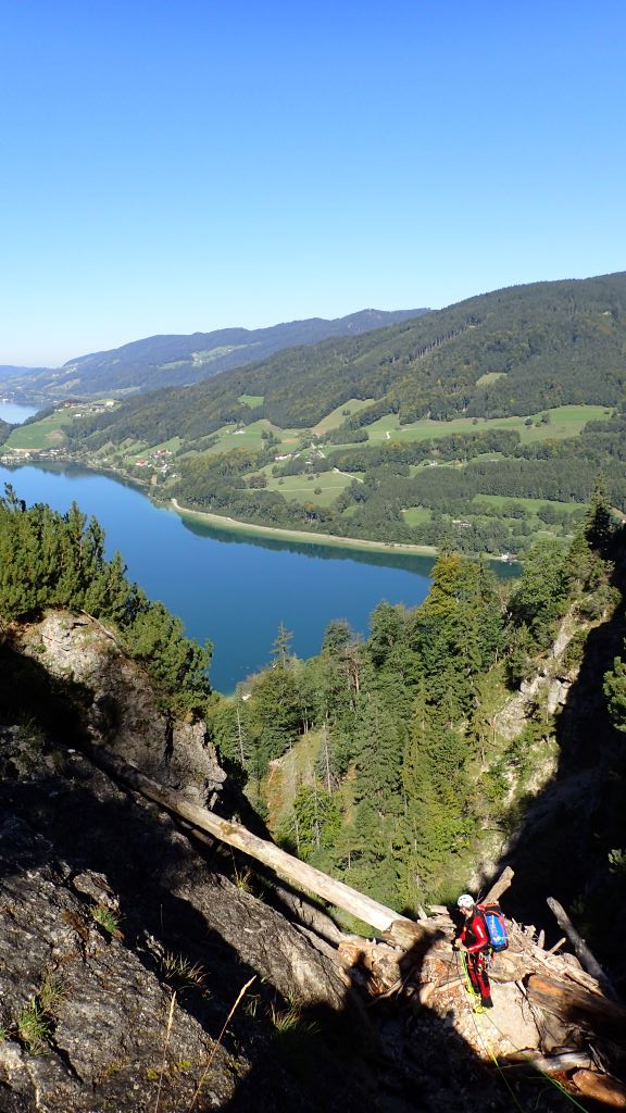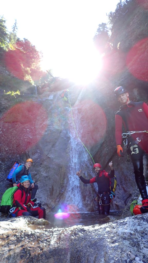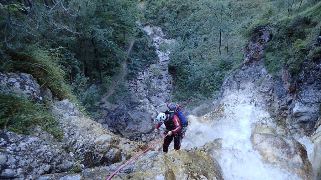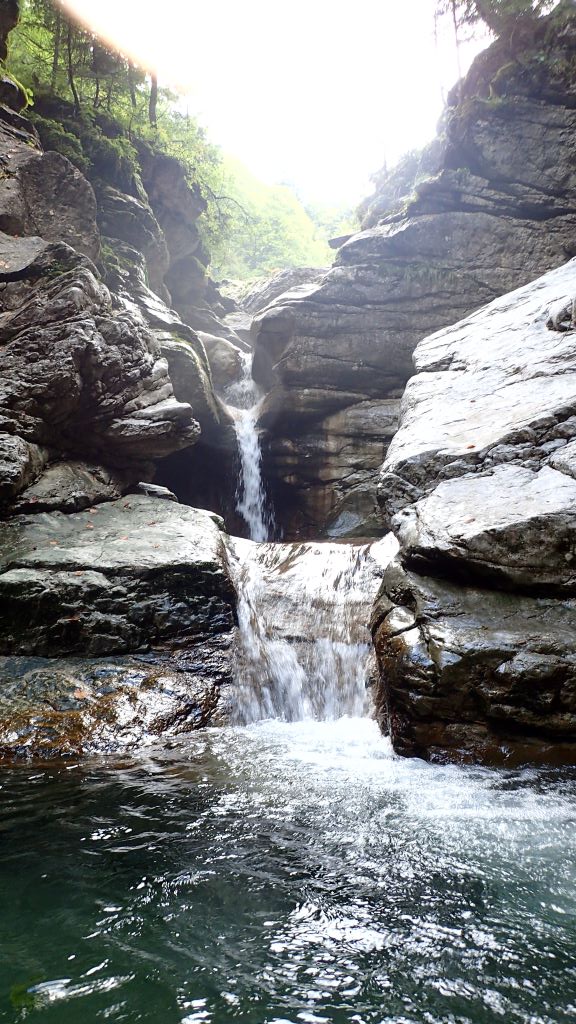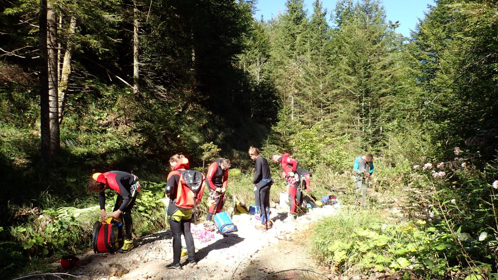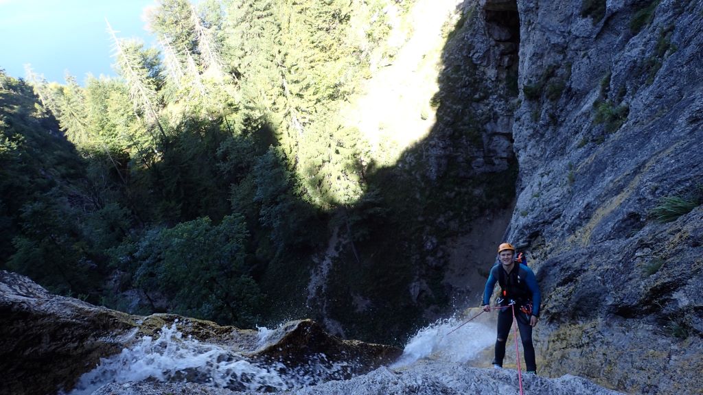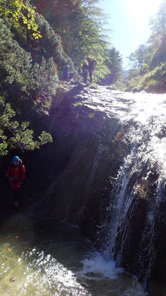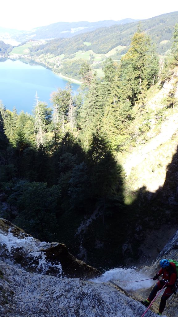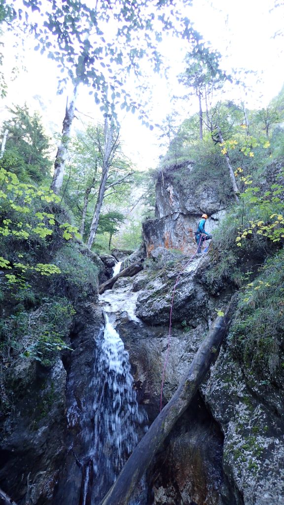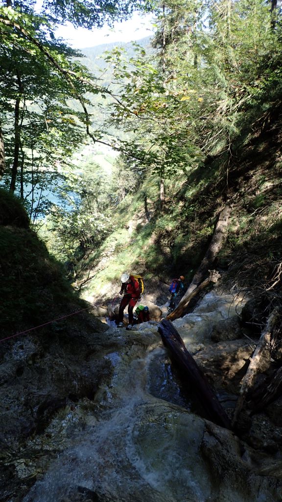 Zum kurzfristig ausgeschriebenen ACA Ausflug (Altersbach) haben sich insgesamt 9 Mitglieder am südlichen Ufer von Mondsee getroffen. Das Wetter war traumhaft und die morgendliche kühlere Temperatur ideal für den steilen Zustieg. Bis zu den ersten Stufen blinzelte sogar die Sonne in die offene Schlucht. Da alle Standplätze im guten Zustand waren und jeder Teilnehmer eine Abseilstelle einrichtete, ging es schnell überschlagend nach unten. Die Tour war wie immer lohnenswert, jedoch auch schon sehr rutschig.