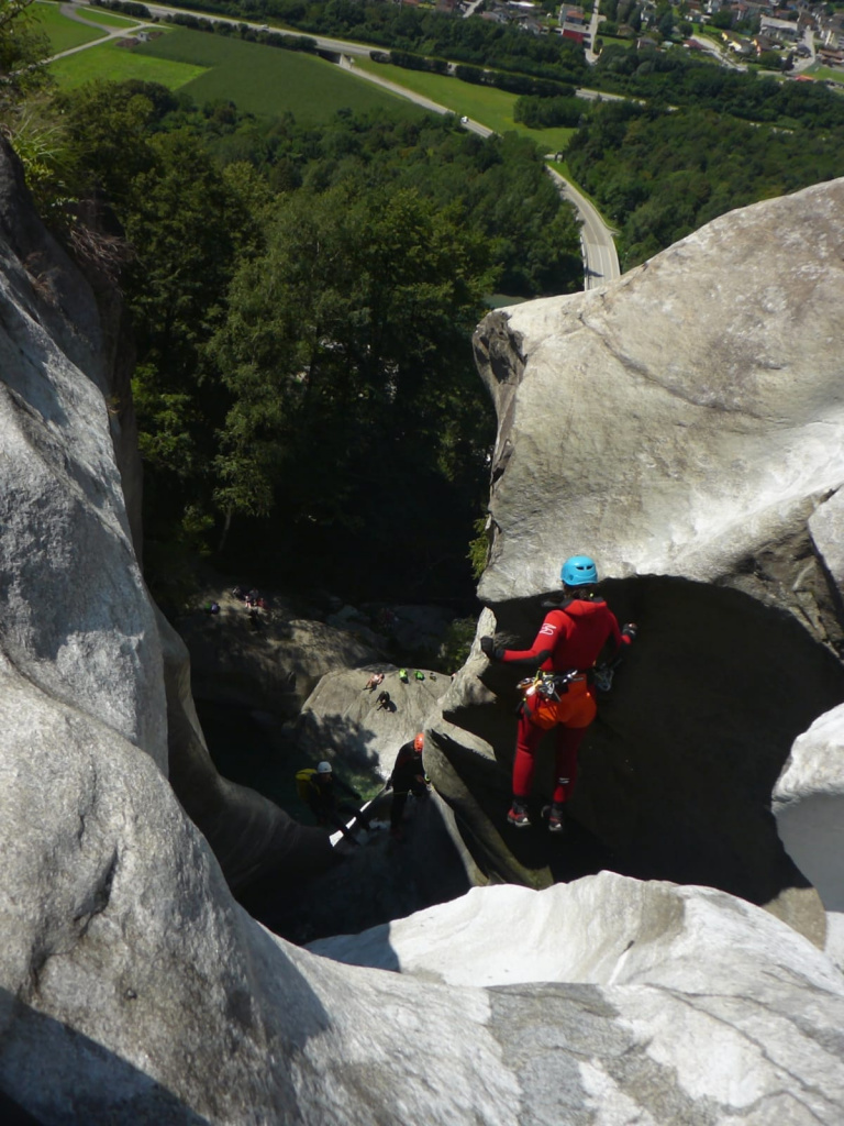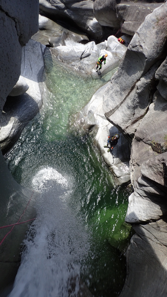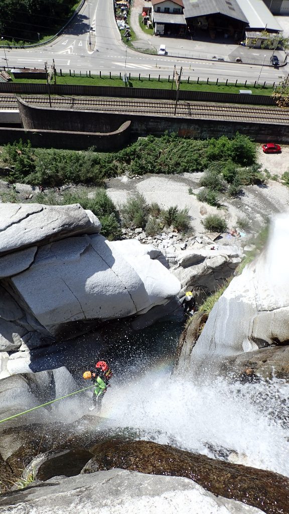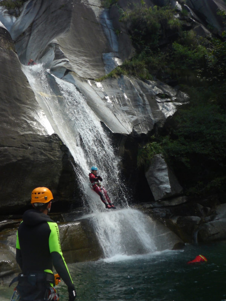 Der letzte Ausflug ins Canyoning Eldorado Tessin war schon lange her. Umso mehr freuten wir uns wieder schöne Granitschluchten zu begehen. Durch den starken Niederschlag (70mm/Std) am Samstag sah es zuerst nicht danach aus, dass Touren in der Tessiner Gegend so schnell wieder möglich wären, jedoch stimmte uns die Wetterprognose zuversichtlich. Da sich noch nicht alle kannten und der Wasserstand am Sonntag sowieso keine lässigen Touren zuließ, machten wir am ersten Tag einen Wanderausflug zu den hohen Wasserfällen der Ri della Froda. Keiner der Teilnehmer dachte zu diesem Zeitpunkt das nach so einen ergiebigen Niederschlag noch Touren möglich wären aber an den darauffolgenden Tagen beruhigte sich die Situation langsam und wir konnten mit insgesamt 17 Mitglieder, bei sportlichem Wasserstand die Touren Malvaglia sup. + inf., Boggera sup. + inf., Iragna intermedio und ein Teil der Iragna inf. machen.Die Schluchten waren schön ausgeputzt, alle Gumpen randvoll, alle Stände OK und das Wetter ideal!