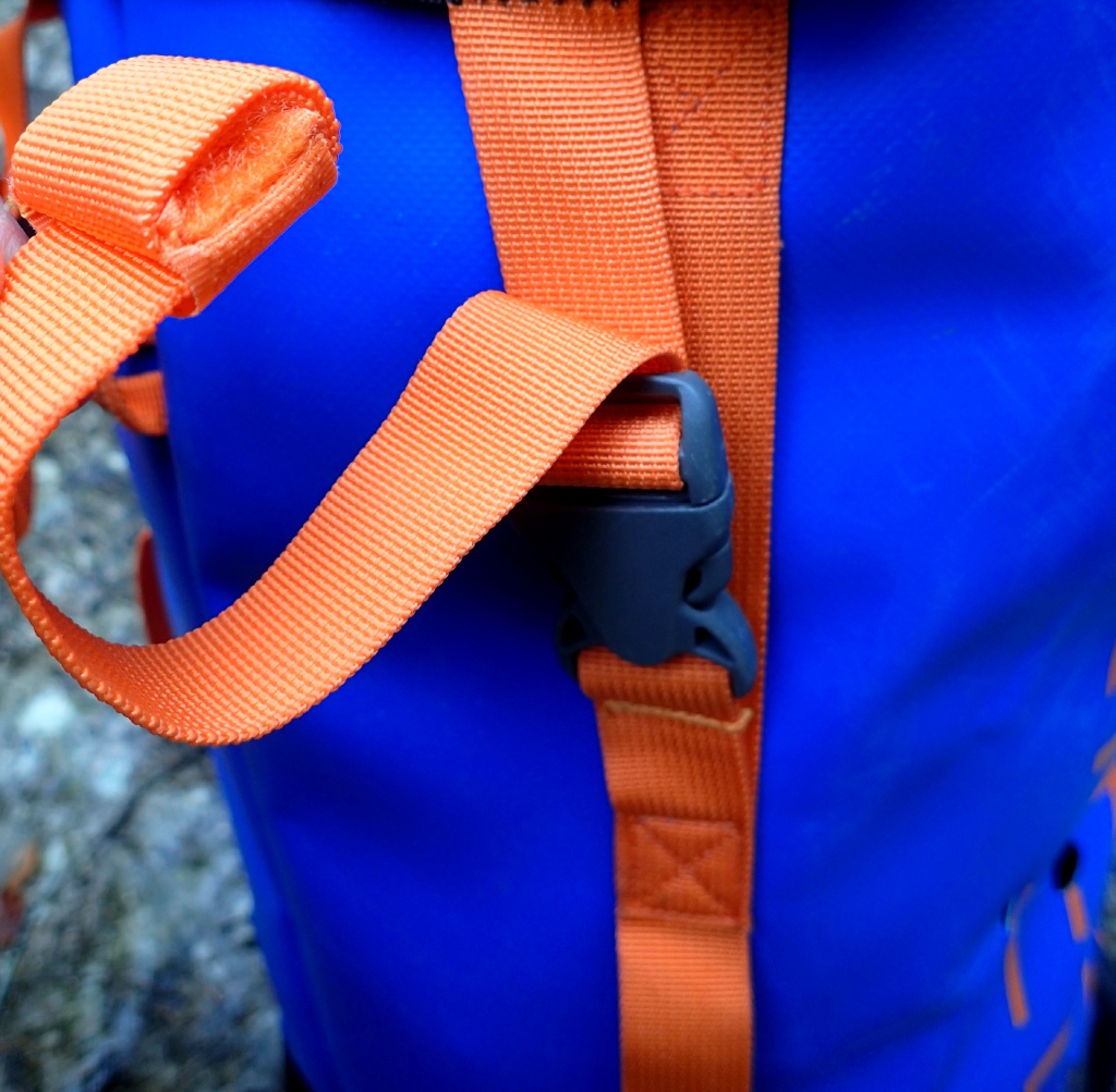 | Materialschlaufe rechts, wurde gut vernäht hält laut Infoblatt 5kg, laut speleo ca. 30kg? |