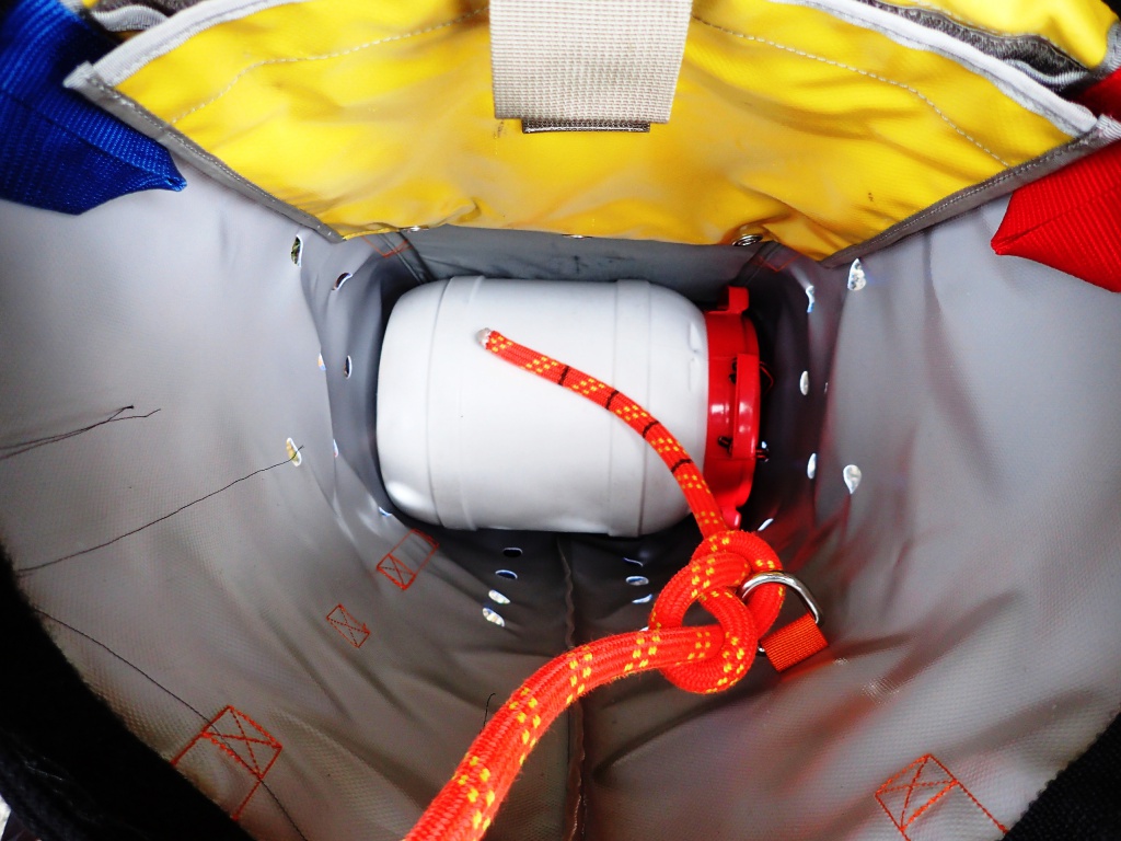 Eine zusätzliche Schlaufe im inneren des Rucksacks dient zur Fixierung der Tonne