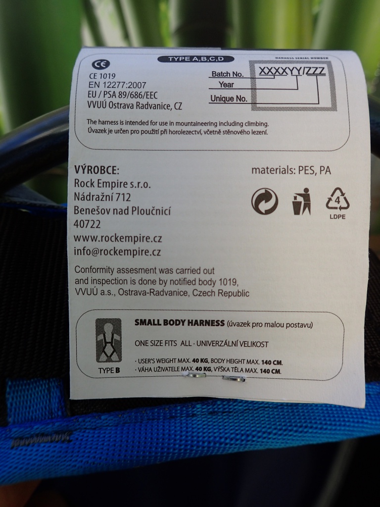 CE,EN Kennzeichnung | Materialschlaufe links, wurde gut vernäht hält laut Infoblatt 5kg, laut speleo ca. 30kg? |