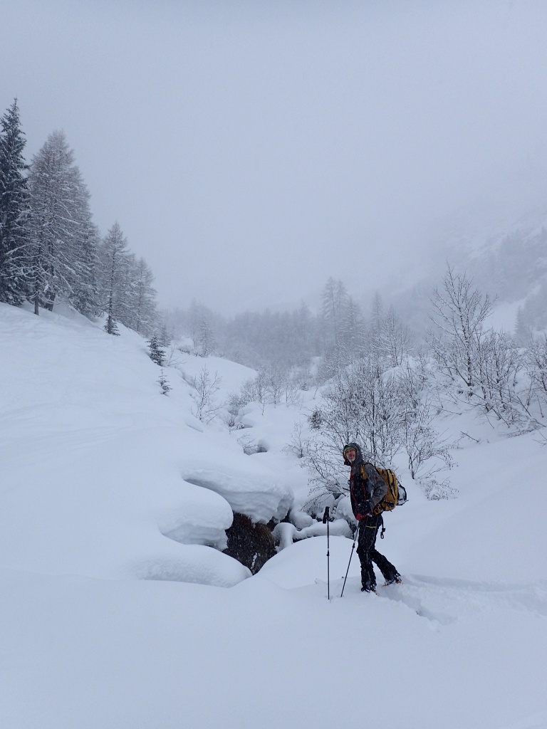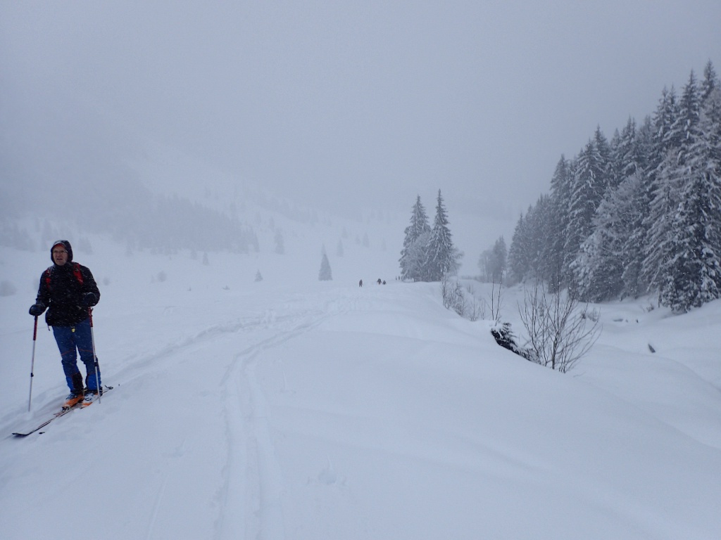 Nach dem LVS-Check ging es gemütlich mit den Tourenskier durch die schön verschneite Winterlandschaft