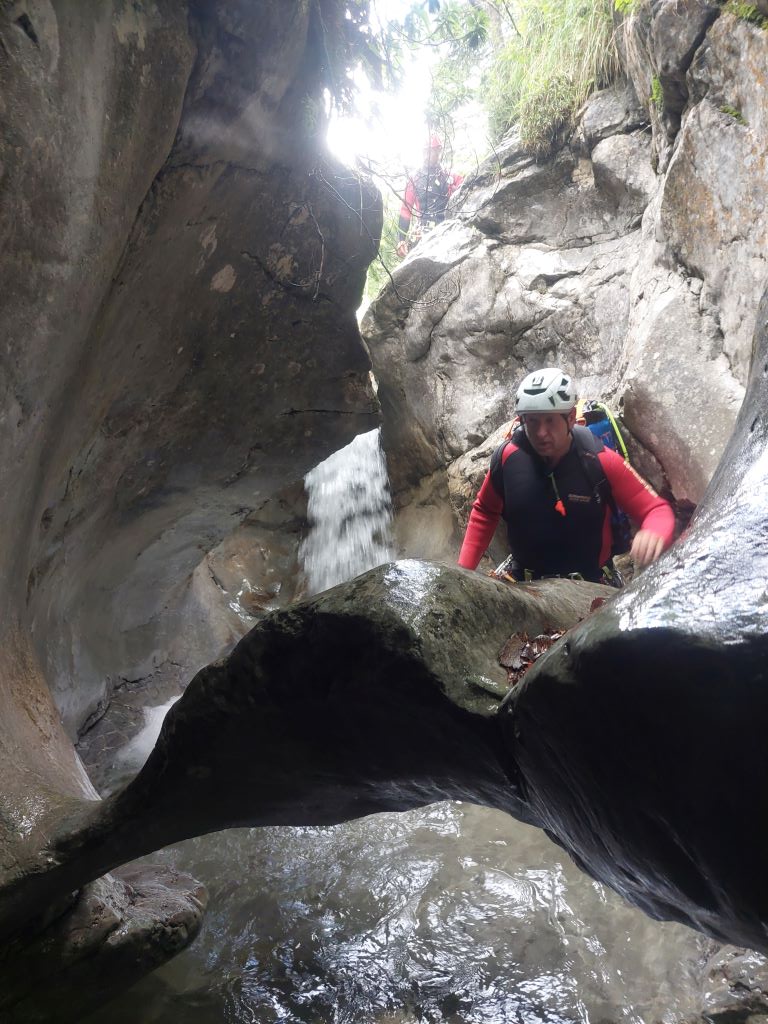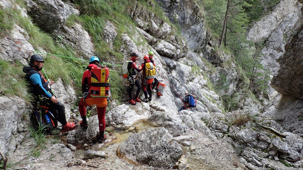 Insgesamt 9 Teilnehmer nahmen am 17.-18. September bei der 3.Fortbildung/Ausflug in Friaul teil. Beim Treffpunkt in Dogna beschlossen wir, aufgrund der von NW eingetroffenen Kaltfront (Starkregen und 6°C) nicht wie vorgesehen die Schlucht Terrarossa inferiore in Angriff zu nehmen, sondern etwas später, die weiter südlich gelegene und daher wetterbegünstigte Favarinis zu machen. Am Nachmittag besserte sich das Wetter und die Temperatur kletterte mit Sonnenschein sogar auf 16°C. Zum Abendessen trafen wir uns in Tolmezzo bei einer guten Pizzeria. Im Anschluss gings noch in eine nahegelegene Bar, wo wir den Tag gemütlich ausklingen ließen.