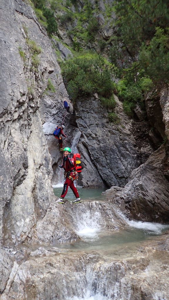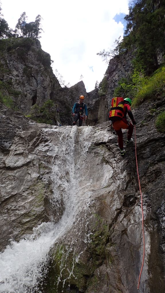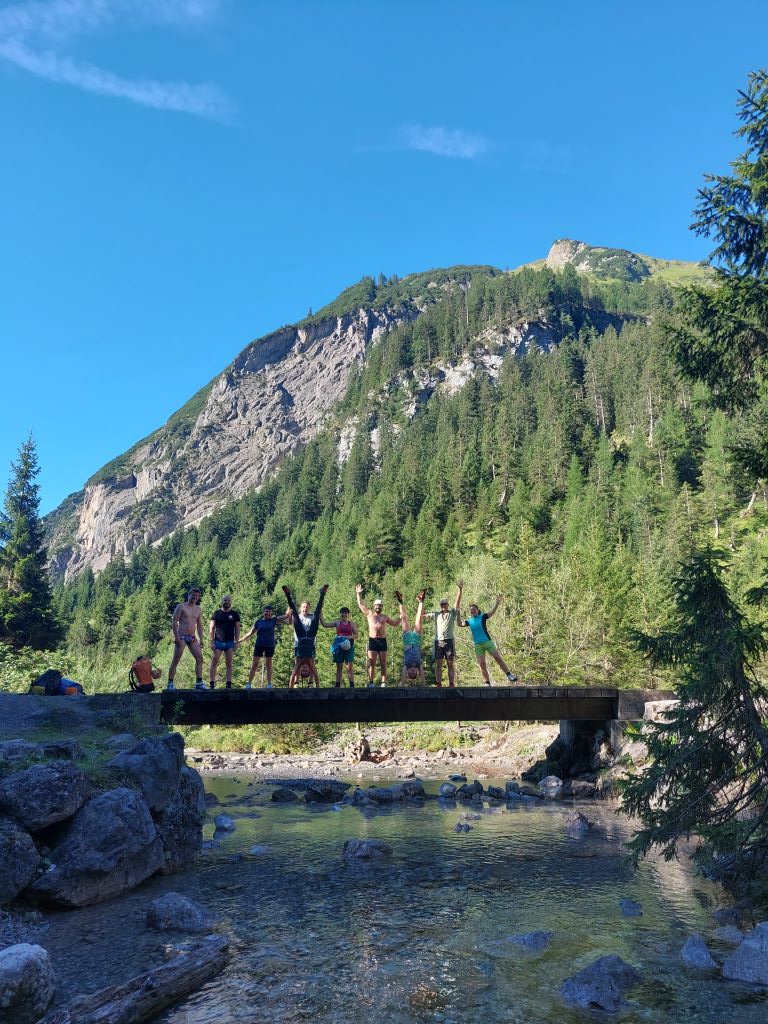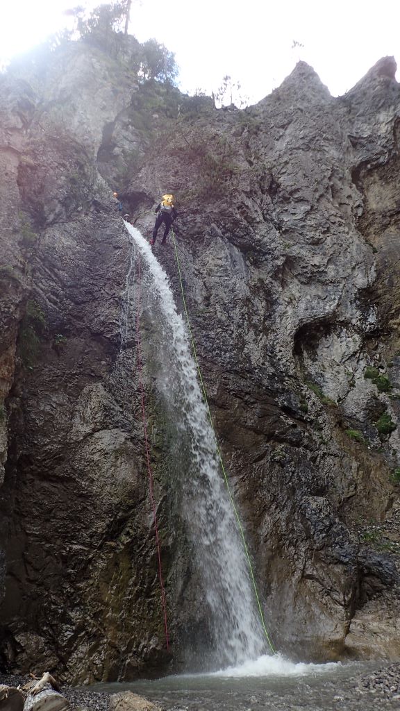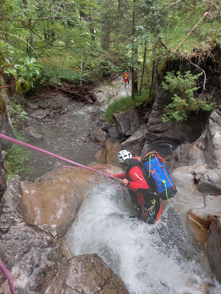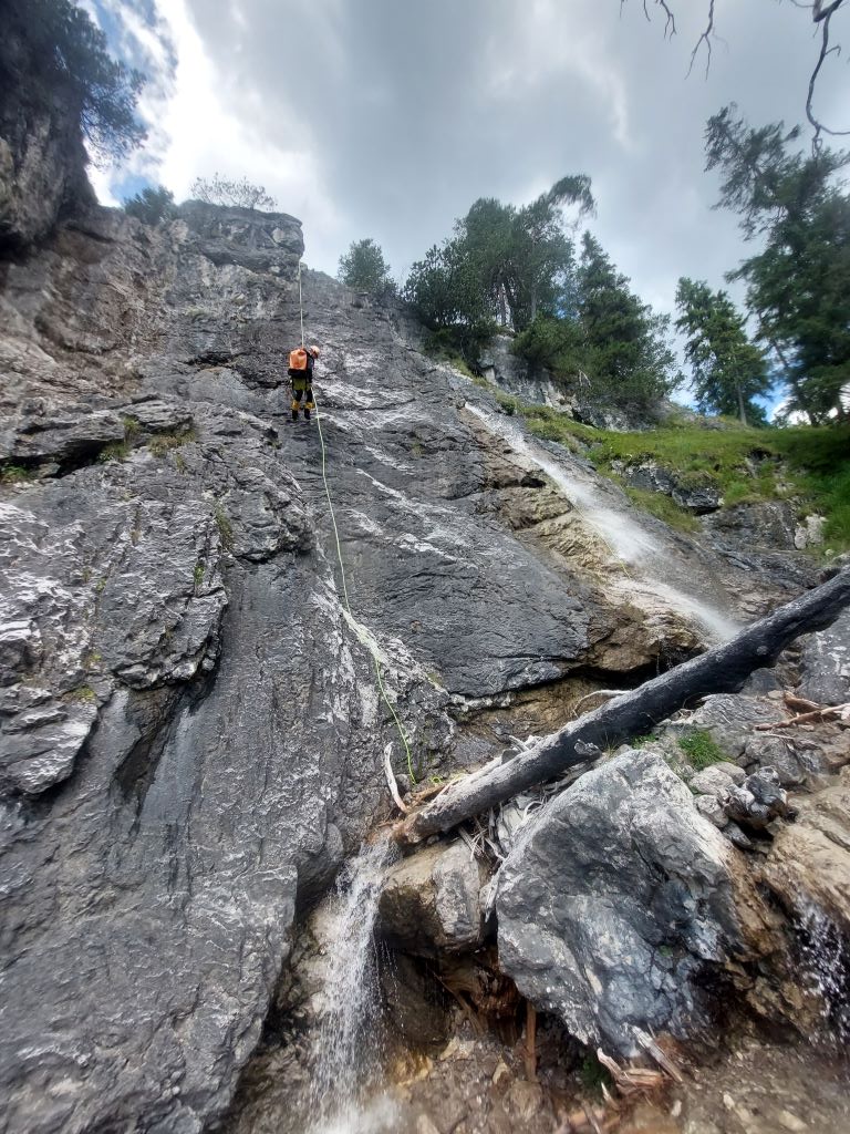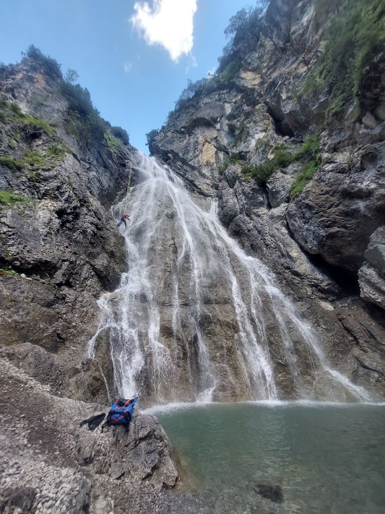 Ganz schön überrascht waren wir am 31Juli, als anstatt der sich angemeldeten 6-7 Personen, doppelt so viele Mitglieder am Treffpunkt Parkplatz Häselgehrbach eintrafen. Gottseidank hatten wir genug Seile eingepackt, so dass wir auch mit der großen Gruppe relativ schnell durch den lohnenswerten Häselgehrbach durchhüpfen konnten. Im Anschluss ging es nach Reutte wo wir neben dem Archbach zu den sehr Touristischen Stuibenfälle zurückgewandert sind. Reutte war auch gleichzeitig der Ausgangspunkt für die nahegelegenen drei Touren; Schwarzenbach, Wiesbach und Sulzlbach. Der letzte der drei genannten Bäche war der schönste und aquatischste. Nach den ersten drei Tagen ging es weiter Richtung Süden ins hintere Lechtal. Dort machten wir den Roßgumpenbach, der auch gleichzeitig das Highlight des Ausflugs war. Da die meisten von uns einen langen Heimweg hatten beschlossen wir am letzten Tag den unteren Teil vom Hochalpbach zu machen. Die Tour wäre sicher auch von weiter oben sehr lohnenswert gewesen. Auch wenn es bei den letzten Ausflügen mit dem Wetter nicht so geklappt hat, hatten wir diesmal richtig viele Sonnenstunden. Danke an die Teilnehmer insbesondere an Stephan und Michael für die gekühlten Radler nach der Tour!