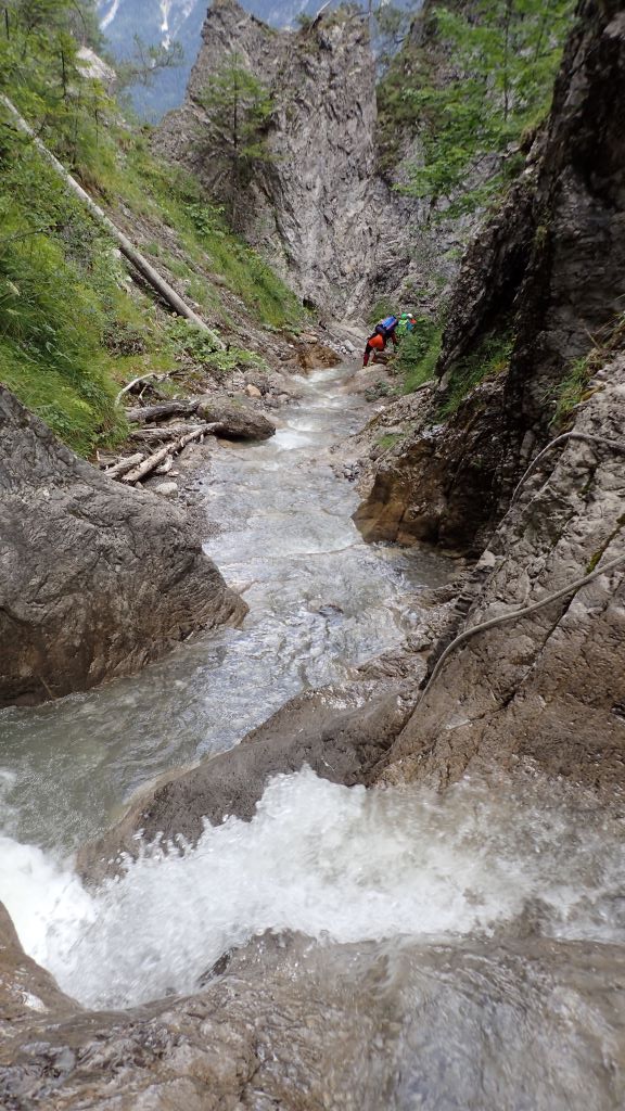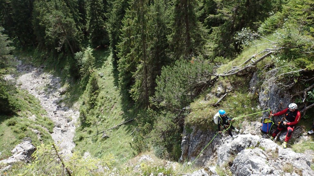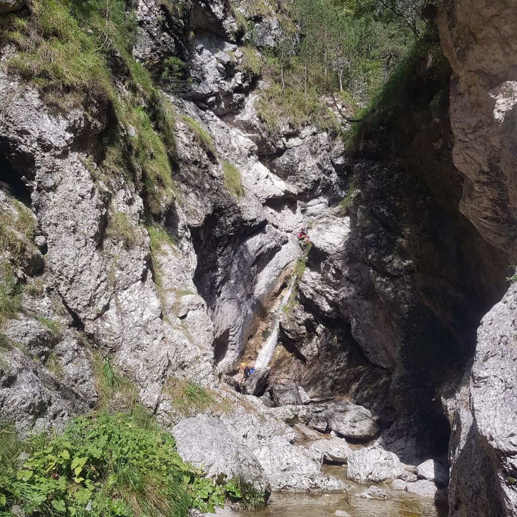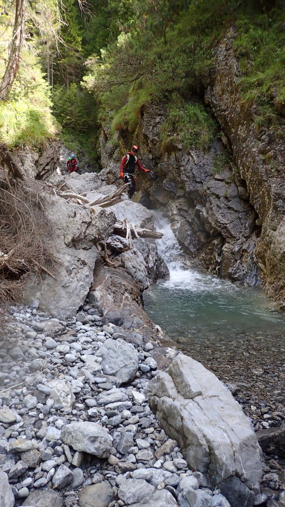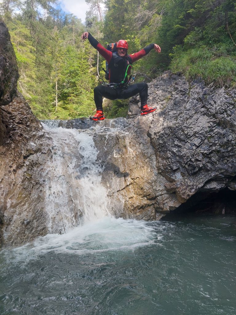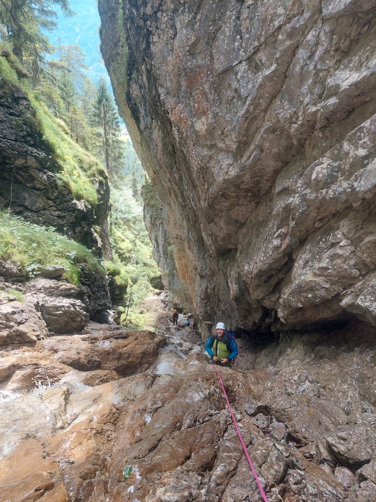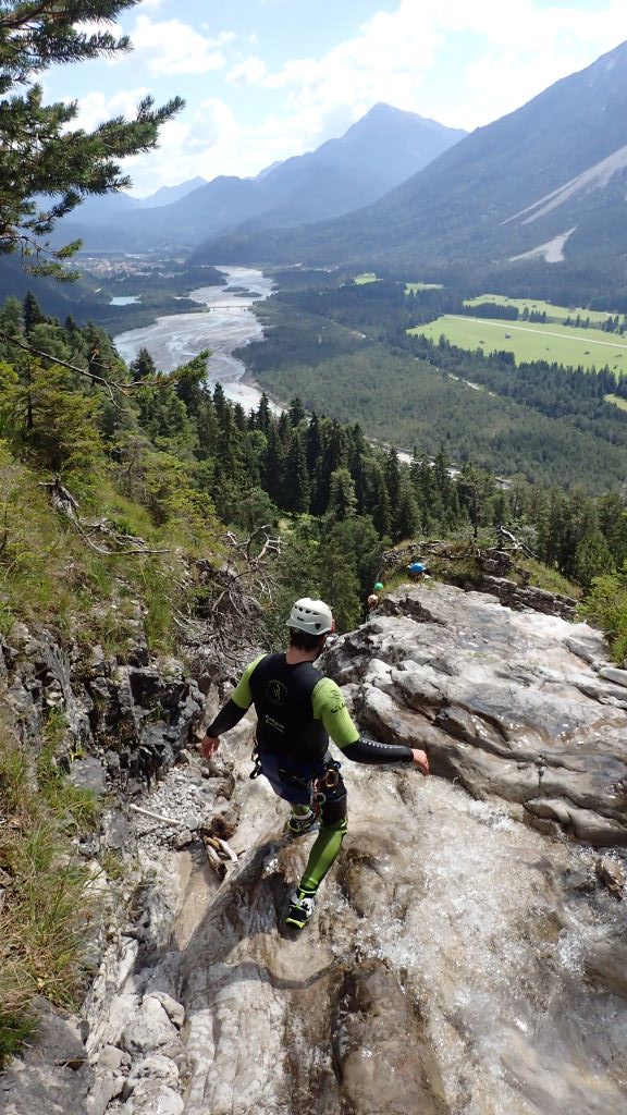 Ganz schön überrascht waren wir am 31Juli, als anstatt der sich angemeldeten 6-7 Personen, doppelt so viele Mitglieder am Treffpunkt Parkplatz Häselgehrbach eintrafen. Gottseidank hatten wir genug Seile eingepackt, so dass wir auch mit der großen Gruppe relativ schnell durch den lohnenswerten Häselgehrbach durchhüpfen konnten. Im Anschluss ging es nach Reutte wo wir neben dem Archbach zu den sehr Touristischen Stuibenfälle zurückgewandert sind. Reutte war auch gleichzeitig der Ausgangspunkt für die nahegelegenen drei Touren; Schwarzenbach, Wiesbach und Sulzlbach. Der letzte der drei genannten Bäche war der schönste und aquatischste. Nach den ersten drei Tagen ging es weiter Richtung Süden ins hintere Lechtal. Dort machten wir den Roßgumpenbach, der auch gleichzeitig das Highlight des Ausflugs war. Da die meisten von uns einen langen Heimweg hatten beschlossen wir am letzten Tag den unteren Teil vom Hochalpbach zu machen. Die Tour wäre sicher auch von weiter oben sehr lohnenswert gewesen. Auch wenn es bei den letzten Ausflügen mit dem Wetter nicht so geklappt hat, hatten wir diesmal richtig viele Sonnenstunden. Danke an die Teilnehmer insbesondere an Stephan und Michael für die gekühlten Radler nach der Tour!