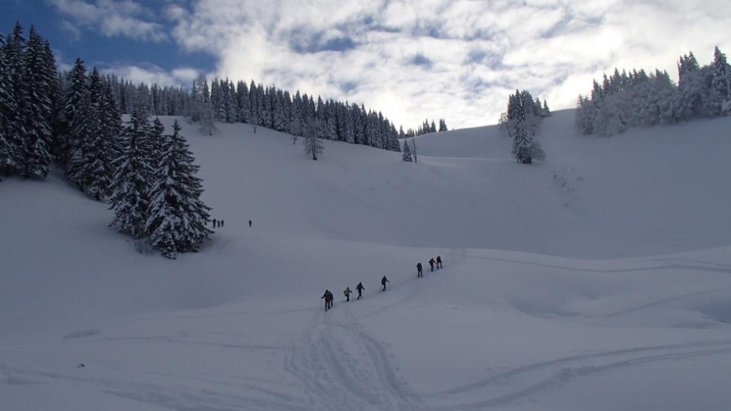 Um nicht einzufrieren und das Theoretische in der Praxis anzuwenden starteten wir unsere Skitour zu der Stubneralm, wo sich ein ideales Übungsgelände befand.