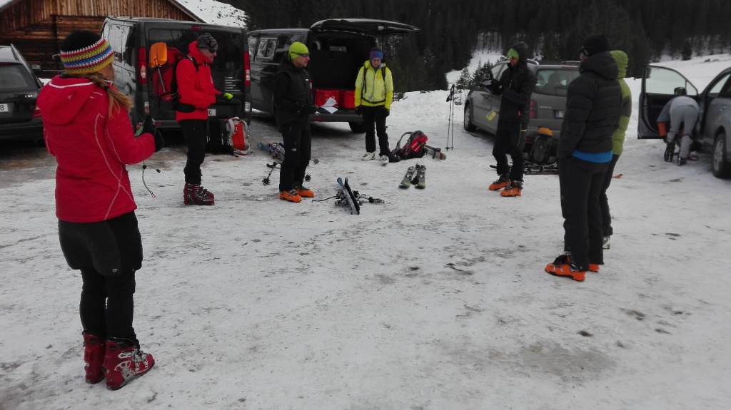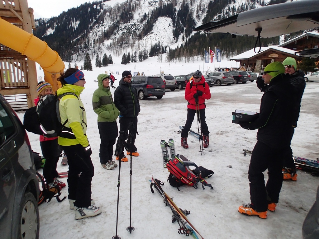 Am Sonntag den 7. Februar war es wieder soweit. 8 Teilnehmer trafen sich zwischen Unter- und Obertauern bei der Gnadenalm zur jährlichen LVS-Übung um für den Ernstfall vorbereitet zu sein. Am Parkplatz vor der Alm gingen wir den Lawinenlagenbericht und Wetterbericht durch. Besprochen wurde auch was bei der Planung/Tourenvorbereitung alles berücksichtigt werden sollte. Danach wurde die Ausrüstung gecheckt und das Übungsgelände/Tourenziel besprochen.