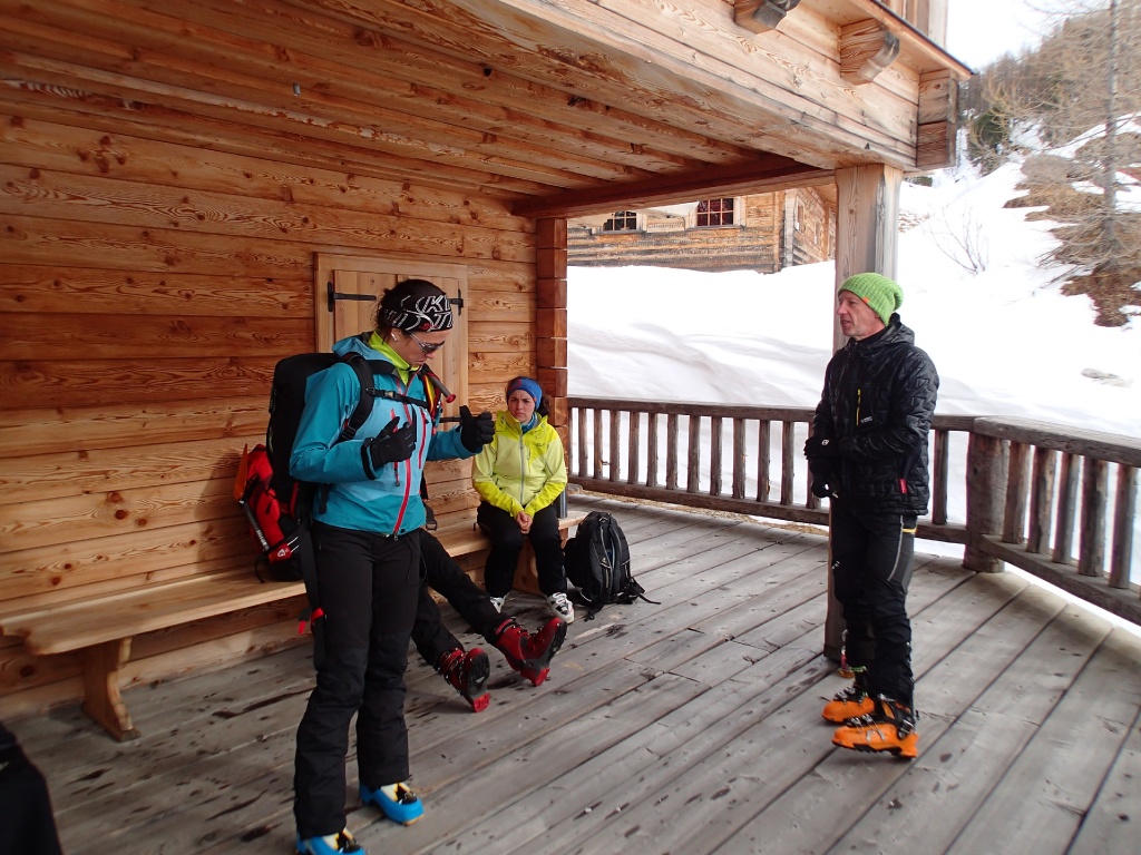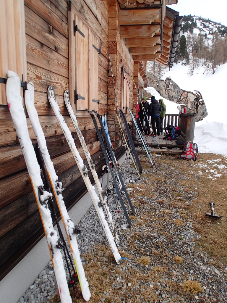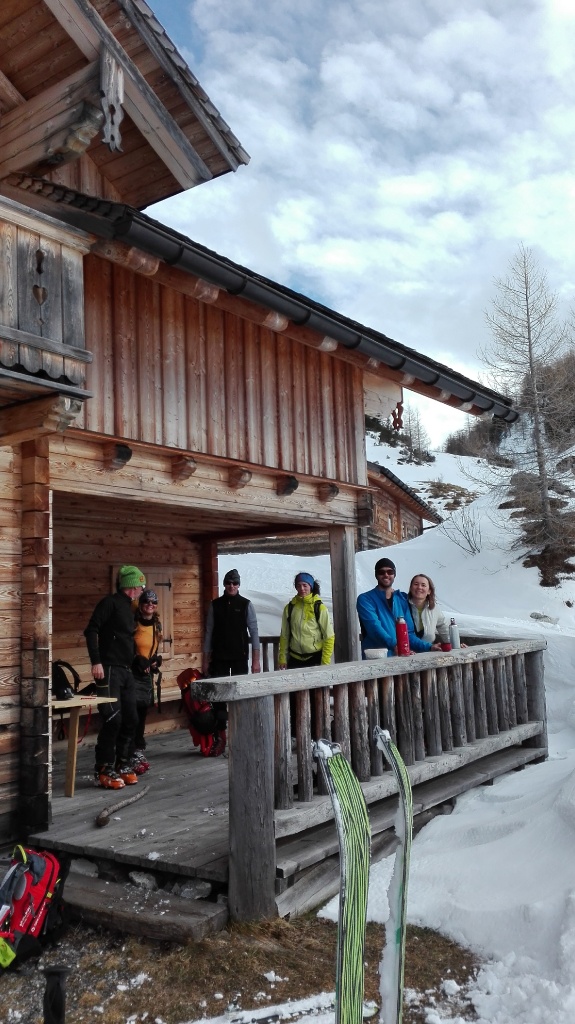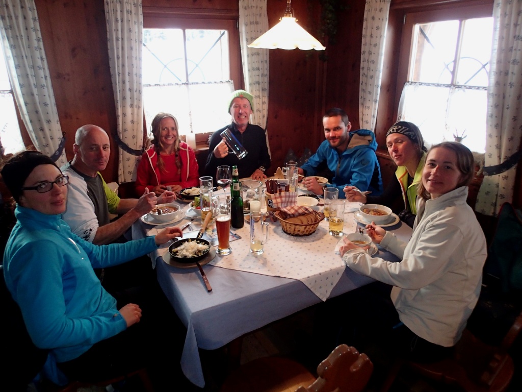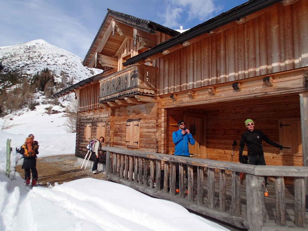 Pünktlich zum Après-Ski um 15.30Uhr beendeten wir zufrieden die Übung. Um noch genügend Tageslicht für die Abfahrt zu haben entschieden wir uns nicht in die nahegelegene Südwienerhütte einzukehren sondern in die Gnadenalm am Ausgangspunkt. Gottseidank spielten sie in der Hütte schon unsere Lieblingsmusik. So schmeckte das Essen und Trinken gleich noch viel besser ;-)
