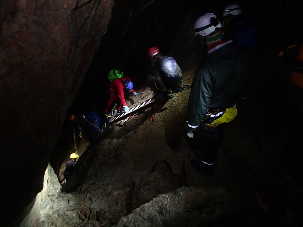 In Ausnahmefällen (Vereinsebene) wie bei uns, konnte in angemessenen Rahmen jedoch eine Begehung stattfinden. Nachdem wir uns um 9Uhr vor der Höhle getroffen und umgezogen hatten, wurde die Ausrüstung gecheckt und ein Sicherheitsgespräch gemacht.