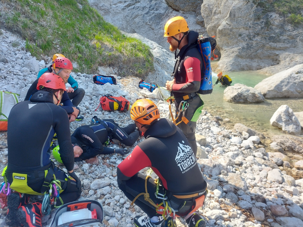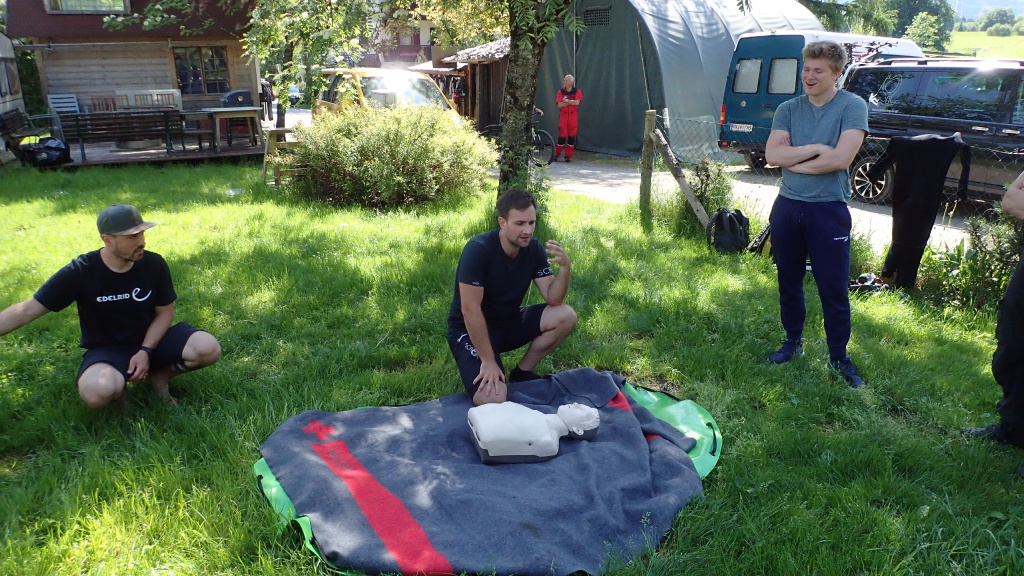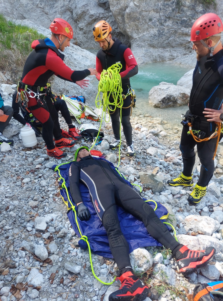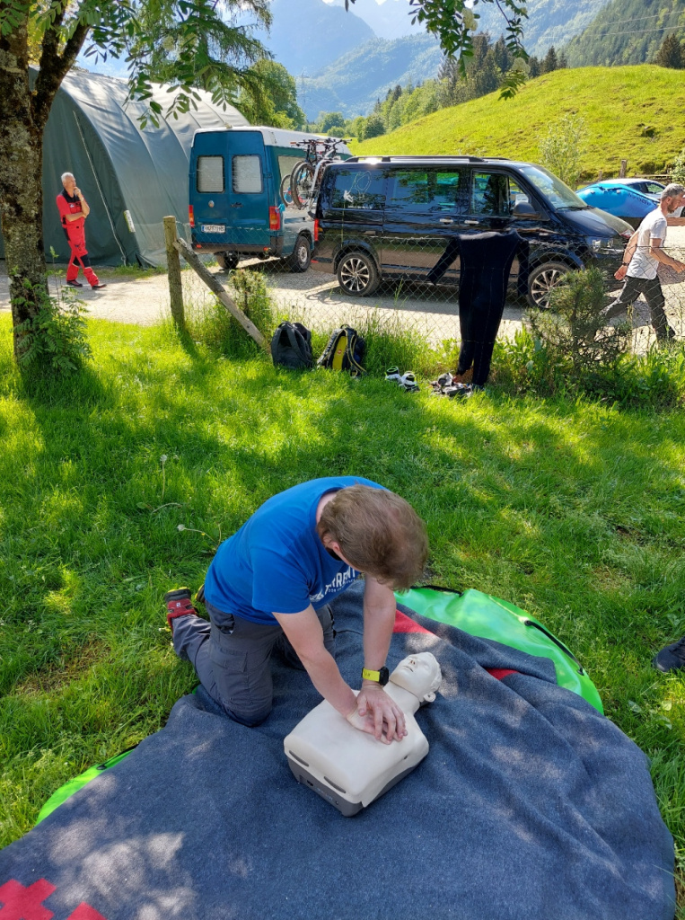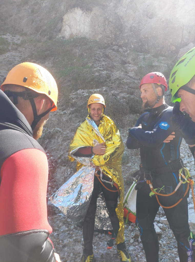 Insgesamt 13 Teilnehmer/innen nahmen beim Training am 15. Mai teil. Die Erste Hilfe wurde von Canyoning Guide und Sani Ausbilder Harald M. mit Unterstützung von Ulli, wie gewohnt sehr professionell erklärt und gezeigt. Bei schönstem Wetter konnten wir am Samstag Vormittag im Outdoorcamp (TOE) Golling und am Nachmittag in der nahegelegenen Schlucht (Fischbach) folgende Themen in der Praxis üben: