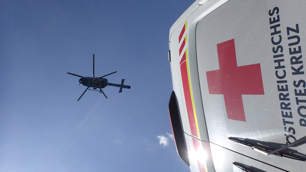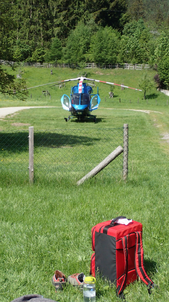 Wie der Zufall es so wollte, gab es am Vormittag einen richtigen Hubschraubereinsatz mit Landeplatz direkt neben unserer Übung (Unfall am Touristisch besuchten Gollinger Wasserfall).